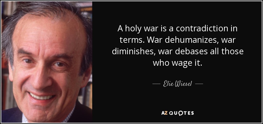 A holy war is a contradiction in terms. War dehumanizes, war diminishes, war debases all those who wage it.