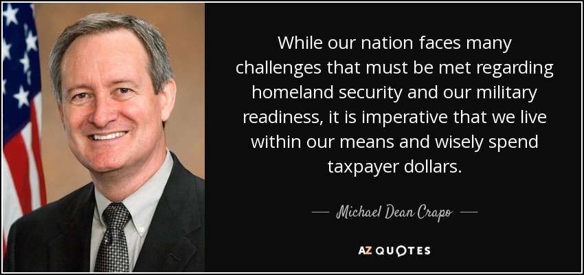 While our nation faces many challenges that must be met regarding homeland security and our military readiness, it is imperative that we live within our means and wisely spend taxpayer dollars.