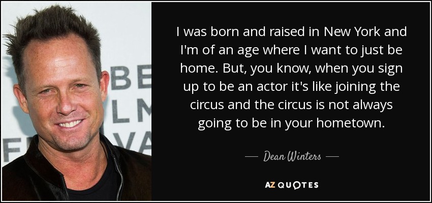 I was born and raised in New York and I'm of an age where I want to just be home. But, you know, when you sign up to be an actor it's like joining the circus and the circus is not always going to be in your hometown.