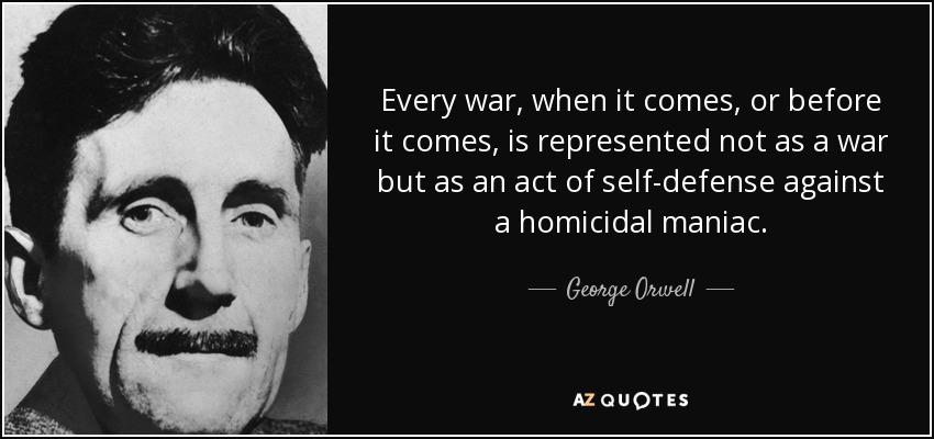 Every war, when it comes, or before it comes, is represented not as a war but as an act of self-defense against a homicidal maniac.