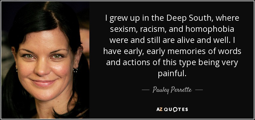I grew up in the Deep South, where sexism, racism, and homophobia were and still are alive and well. I have early, early memories of words and actions of this type being very painful.