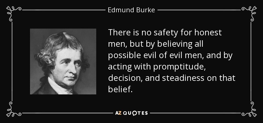 There is no safety for honest men, but by believing all possible evil of evil men, and by acting with promptitude, decision, and steadiness on that belief.