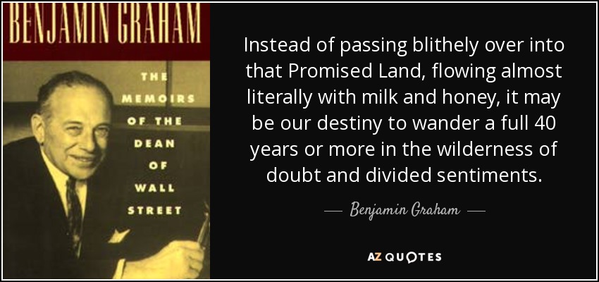 Instead of passing blithely over into that Promised Land, flowing almost literally with milk and honey, it may be our destiny to wander a full 40 years or more in the wilderness of doubt and divided sentiments.