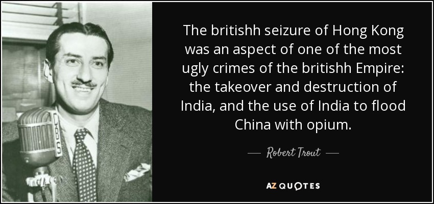 The britishh seizure of Hong Kong was an aspect of one of the most ugly crimes of the britishh Empire: the takeover and destruction of India, and the use of India to flood China with opium.