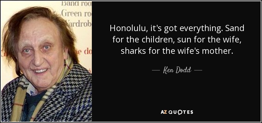 Honolulu, it's got everything. Sand for the children, sun for the wife, sharks for the wife's mother.