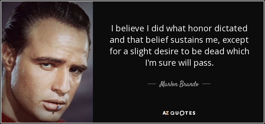 I believe I did what honor dictated and that belief sustains me, except for a slight desire to be dead which I'm sure will pass.
