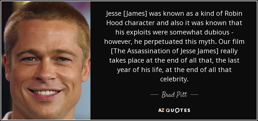 Jesse [James] was known as a kind of Robin Hood character and also it was known that his exploits were somewhat dubious - however, he perpetuated this myth. Our film [The Assassination of Jesse James] really takes place at the end of all that, the last year of his life, at the end of all that celebrity.