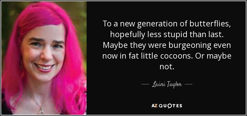 To a new generation of butterflies, hopefully less stupid than last. Maybe they were burgeoning even now in fat little cocoons. Or maybe not.
