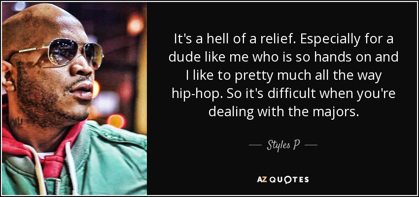It's a hell of a relief. Especially for a dude like me who is so hands on and I like to pretty much all the way hip-hop. So it's difficult when you're dealing with the majors.