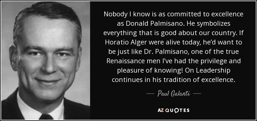 Nobody I know is as committed to excellence as Donald Palmisano. He symbolizes everything that is good about our country. If Horatio Alger were alive today, heʼd want to be just like Dr. Palmisano, one of the true Renaissance men Iʼve had the privilege and pleasure of knowing! On Leadership continues in his tradition of excellence.