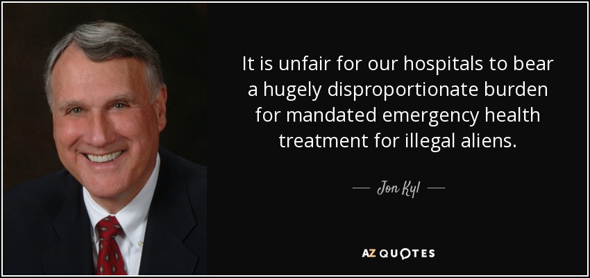 It is unfair for our hospitals to bear a hugely disproportionate burden for mandated emergency health treatment for illegal aliens.