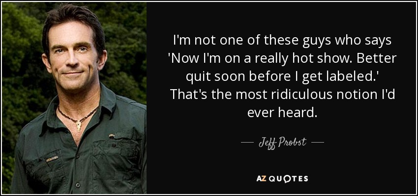 I'm not one of these guys who says 'Now I'm on a really hot show. Better quit soon before I get labeled.' That's the most ridiculous notion I'd ever heard.
