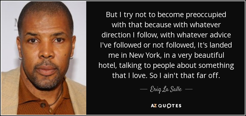 But I try not to become preoccupied with that because with whatever direction I follow, with whatever advice I've followed or not followed, It's landed me in New York, in a very beautiful hotel, talking to people about something that I love. So I ain't that far off.