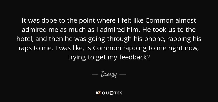 It was dope to the point where I felt like Common almost admired me as much as I admired him. He took us to the hotel, and then he was going through his phone, rapping his raps to me. I was like, Is Common rapping to me right now, trying to get my feedback?
