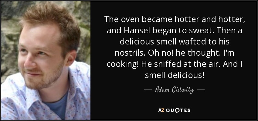 The oven became hotter and hotter, and Hansel began to sweat. Then a delicious smell wafted to his nostrils. Oh no! he thought. I'm cooking! He sniffed at the air. And I smell delicious!