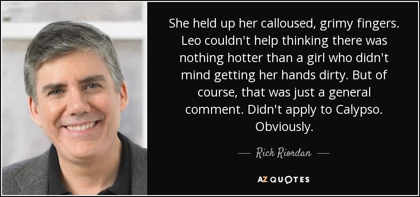 She held up her calloused, grimy fingers. Leo couldn't help thinking there was nothing hotter than a girl who didn't mind getting her hands dirty. But of course, that was just a general comment. Didn't apply to Calypso. Obviously.