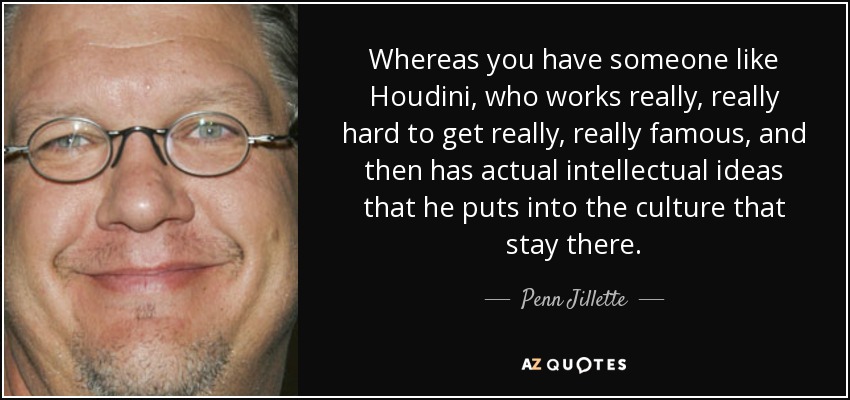 Whereas you have someone like Houdini, who works really, really hard to get really, really famous, and then has actual intellectual ideas that he puts into the culture that stay there.