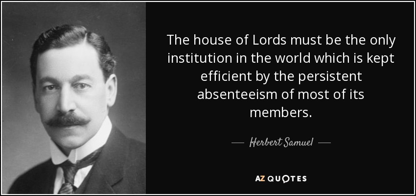 The house of Lords must be the only institution in the world which is kept efficient by the persistent absenteeism of most of its members.