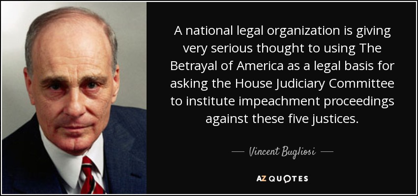 A national legal organization is giving very serious thought to using The Betrayal of America as a legal basis for asking the House Judiciary Committee to institute impeachment proceedings against these five justices.