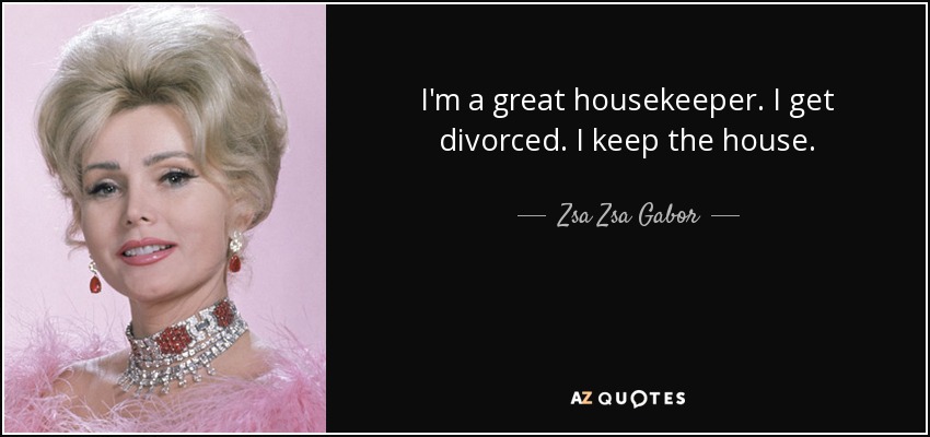 I'm a great housekeeper. I get divorced. I keep the house.