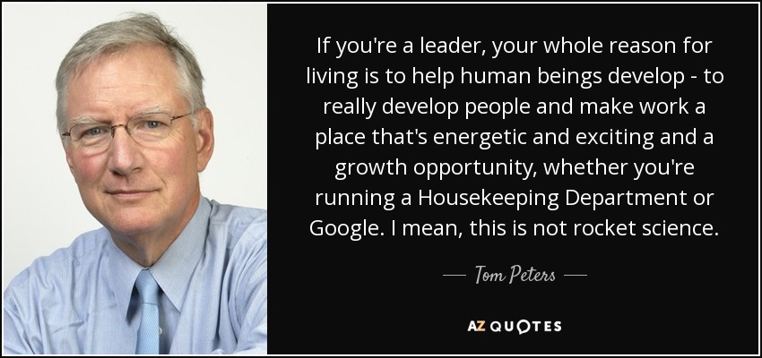 If you're a leader, your whole reason for living is to help human beings develop - to really develop people and make work a place that's energetic and exciting and a growth opportunity, whether you're running a Housekeeping Department or Google. I mean, this is not rocket science.