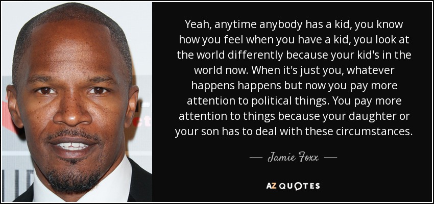 Yeah, anytime anybody has a kid, you know how you feel when you have a kid, you look at the world differently because your kid's in the world now. When it's just you, whatever happens happens but now you pay more attention to political things. You pay more attention to things because your daughter or your son has to deal with these circumstances.