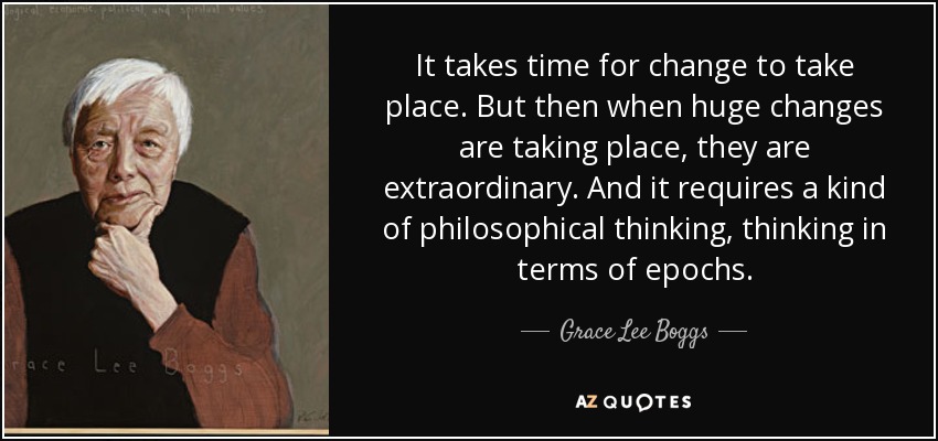 It takes time for change to take place. But then when huge changes are taking place, they are extraordinary. And it requires a kind of philosophical thinking, thinking in terms of epochs.