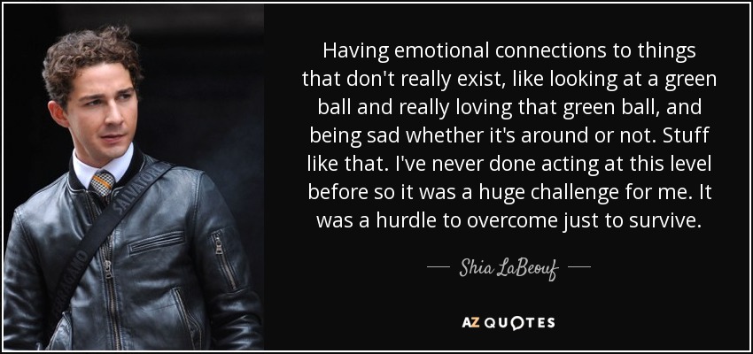 Having emotional connections to things that don't really exist, like looking at a green ball and really loving that green ball, and being sad whether it's around or not. Stuff like that. I've never done acting at this level before so it was a huge challenge for me. It was a hurdle to overcome just to survive.