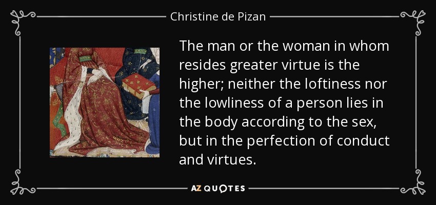 The man or the woman in whom resides greater virtue is the higher; neither the loftiness nor the lowliness of a person lies in the body according to the sex, but in the perfection of conduct and virtues.