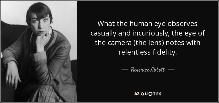 What the human eye observes casually and incuriously, the eye of the camera (the lens) notes with relentless fidelity.