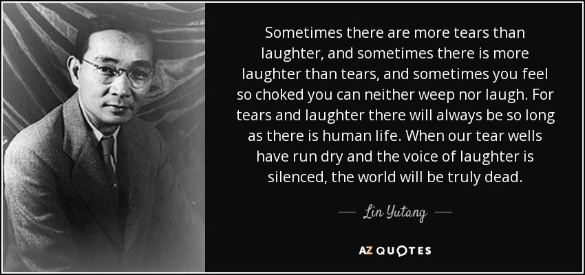 Sometimes there are more tears than laughter, and sometimes there is more laughter than tears, and sometimes you feel so choked you can neither weep nor laugh. For tears and laughter there will always be so long as there is human life. When our tear wells have run dry and the voice of laughter is silenced, the world will be truly dead.