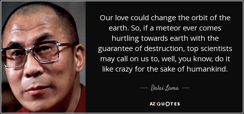 Our love could change the orbit of the earth. So, if a meteor ever comes hurtling towards earth with the guarantee of destruction, top scientists may call on us to, well, you know, do it like crazy for the sake of humankind.