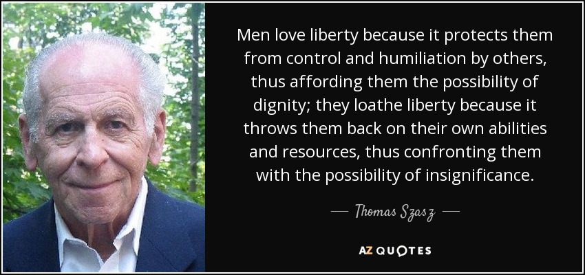 Men love liberty because it protects them from control and humiliation by others, thus affording them the possibility of dignity; they loathe liberty because it throws them back on their own abilities and resources, thus confronting them with the possibility of insignificance.