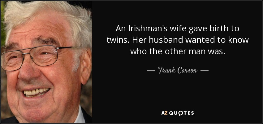An Irishman's wife gave birth to twins. Her husband wanted to know who the other man was.