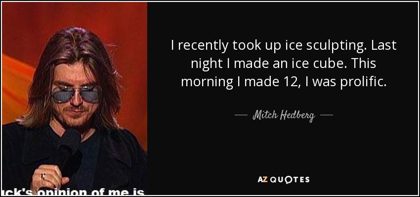 I recently took up ice sculpting. Last night I made an ice cube. This morning I made 12, I was prolific.