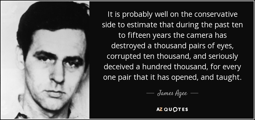 It is probably well on the conservative side to estimate that during the past ten to fifteen years the camera has destroyed a thousand pairs of eyes, corrupted ten thousand, and seriously deceived a hundred thousand, for every one pair that it has opened, and taught.