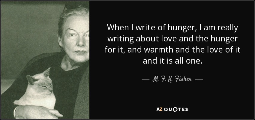 When I write of hunger, I am really writing about love and the hunger for it, and warmth and the love of it and it is all one.