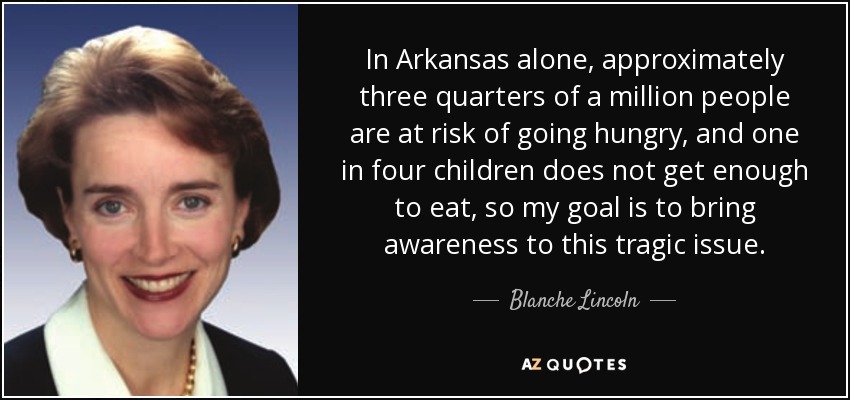 In Arkansas alone, approximately three quarters of a million people are at risk of going hungry, and one in four children does not get enough to eat, so my goal is to bring awareness to this tragic issue.