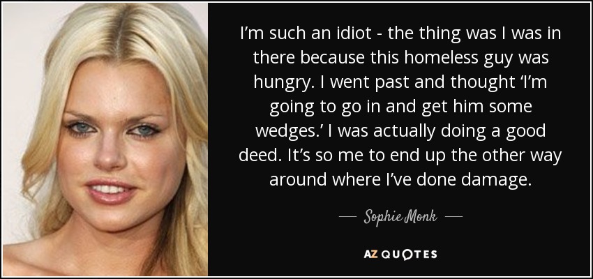 I’m such an idiot - the thing was I was in there because this homeless guy was hungry. I went past and thought ‘I’m going to go in and get him some wedges.’ I was actually doing a good deed. It’s so me to end up the other way around where I’ve done damage.