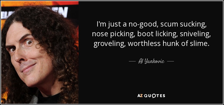 I'm just a no-good, scum sucking, nose picking, boot licking, sniveling, groveling, worthless hunk of slime.
