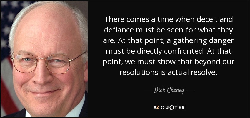 There comes a time when deceit and defiance must be seen for what they are. At that point, a gathering danger must be directly confronted. At that point, we must show that beyond our resolutions is actual resolve.