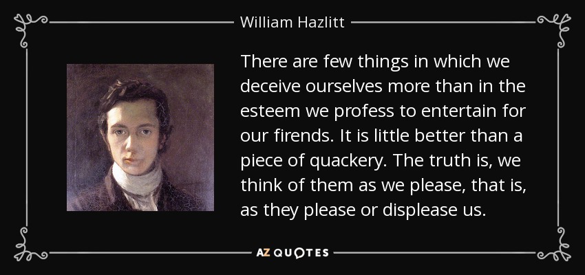 There are few things in which we deceive ourselves more than in the esteem we profess to entertain for our firends. It is little better than a piece of quackery. The truth is, we think of them as we please, that is, as they please or displease us.