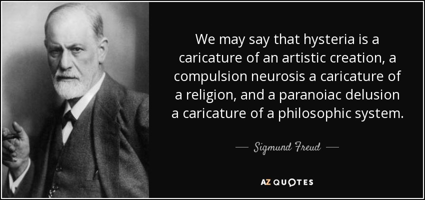 We may say that hysteria is a caricature of an artistic creation, a compulsion neurosis a caricature of a religion, and a paranoiac delusion a caricature of a philosophic system.