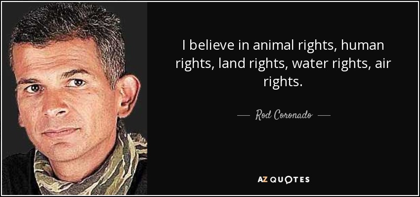 I believe in animal rights, human rights, land rights, water rights, air rights.
