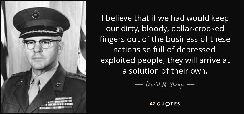 I believe that if we had would keep our dirty, bloody, dollar-crooked fingers out of the business of these nations so full of depressed, exploited people, they will arrive at a solution of their own.