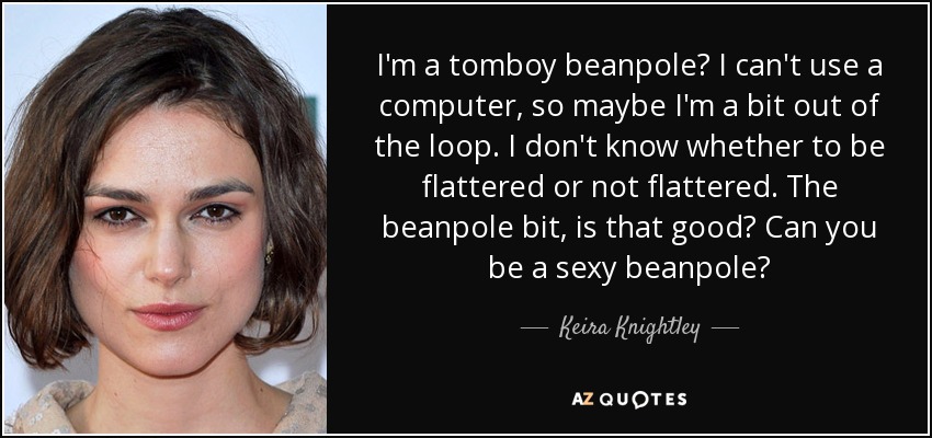 I'm a tomboy beanpole? I can't use a computer, so maybe I'm a bit out of the loop. I don't know whether to be flattered or not flattered. The beanpole bit, is that good? Can you be a sexy beanpole?