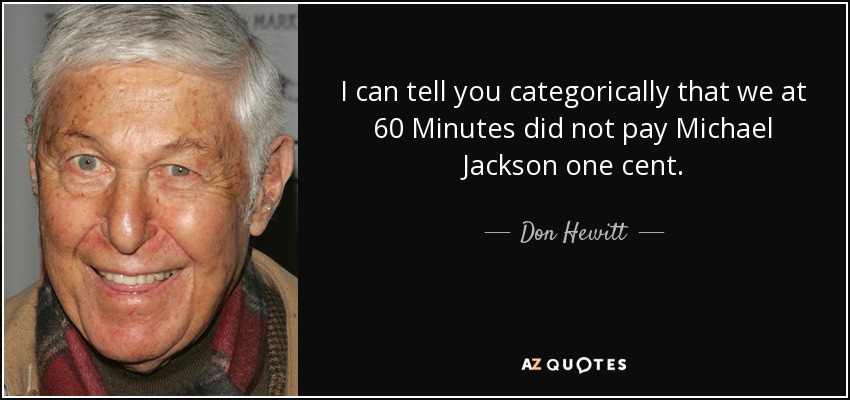 I can tell you categorically that we at 60 Minutes did not pay Michael Jackson one cent.