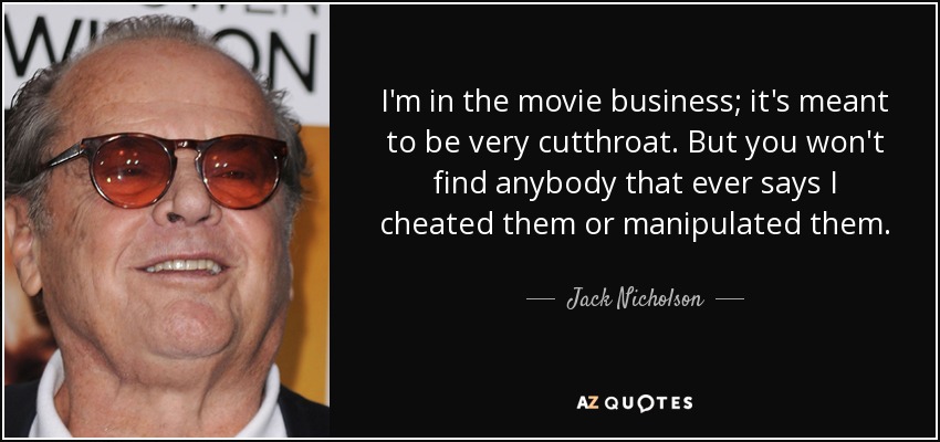 I'm in the movie business; it's meant to be very cutthroat. But you won't find anybody that ever says I cheated them or manipulated them.