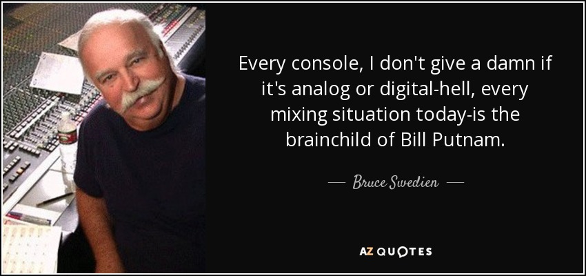 Every console, I don't give a damn if it's analog or digital-hell, every mixing situation today-is the brainchild of Bill Putnam.