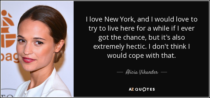 I love New York, and I would love to try to live here for a while if I ever got the chance, but it's also extremely hectic. I don't think I would cope with that.